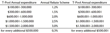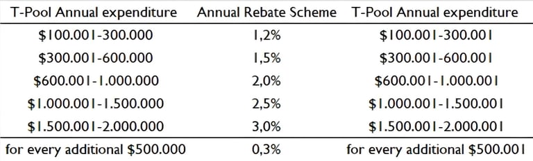 MTM T-Pool is able to negotiate estimated annual expenditures on the basis of the collective purchase volumes of all its members. We are achieving maximum discounts and an innovative incremental rebate scheme that rewards the owners at the end of the financial year with a cash-back percentage rebate based on their annual expenditure. Similarly, Vendor Members are able to predict their annual turnover with high accuracy and security for the forthcoming fiscal year.