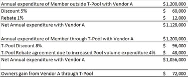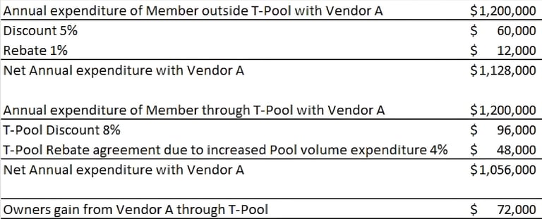 Growing the vendors agreements pool, provides a platform through which owners can benefit from additional discounts and rebates based on the increased performance of fellow members